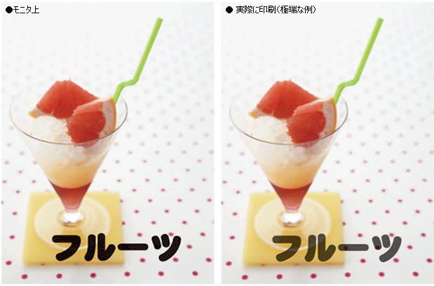 モニタでは同じ『黒』だと思っていたが、印刷すると違う『黒』だったという事もあります。